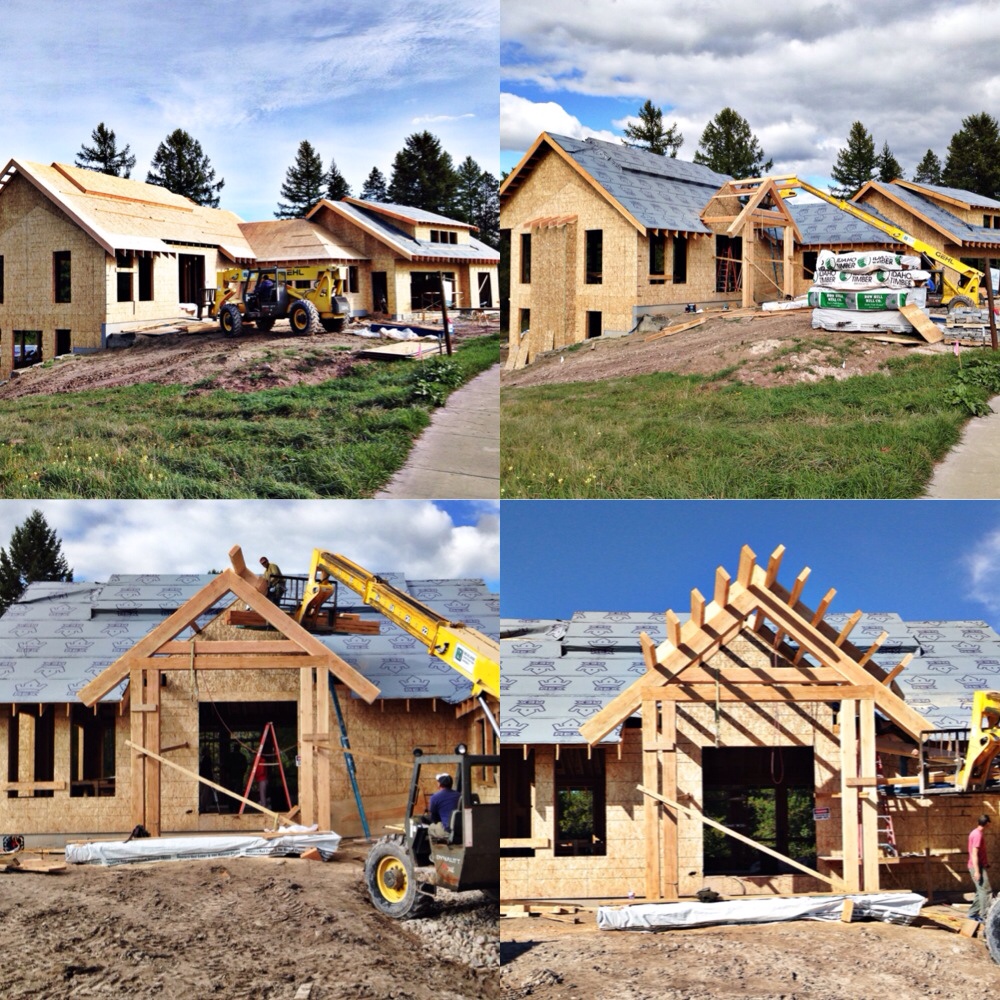 Our framers are getting the sheeting on our Whitetail project, the roofers start tomorrow. Not a day too soon, it has been a hot, sunny month in Whitefish…this house is ready for some shade!